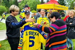 Hokej to wielka rodzina – świętując przy Kościele w ogrodach Św. Katarzyny, hokeiści Żaka Starszego wykorzystali okazję wspólnego spotkania się ze swoją już byłą, a ulubioną wychowawczynią Panią Sięką Urszulą. Pani Sięka uczyła swoich wychowanków w szkole nr 11, a w roku szkolnym 2021 otrzymała nominację na dyrektora szkoły podstawowej nr 5 w Nowym Targu. Odchodząc przepisy pandemii nie dawały wcześniej okazji do wspólnego spotkania ze swoimi wychowankami.