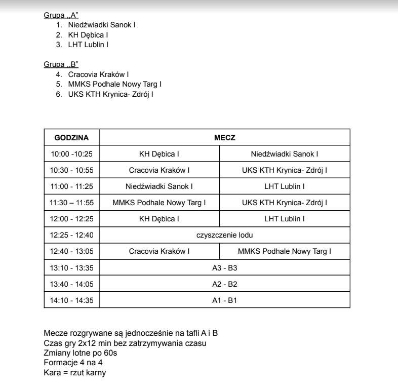Przed Narybkiem MMKS-u Podhale Nowy Targ niedziela na wyjeździe. Nasi gracze udadzą się do, by zagrać z kolegami z innych drużyn w Turnieju Mini Hokeja. Poza Podhalem w wydarzeniu udział wezmą także Niedźwiadki Sanok, KH Dębica, LHT Lubin, Cracovia Kraków i UKS KTH Krynica Zdrój.