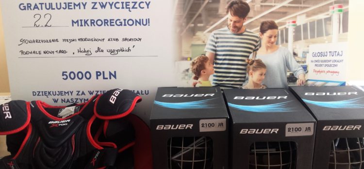 Dzięki projektowi programu Tesco “decydujesz pomagamy” za wygraną kwotę 5 000,00 zł został zakupiony sprzęt hokejowy dla najmłodszych dzieciaków. Doposażyliśmy magazyny Miejskiego Młodzieżowego Klubu Sportowego w kaski hokejowe, bodyczki i spodenki. Dzięki tej szczęśliwej dla nas akcji mamy możliwość wyposażenia w stroje hokejowe dzieci w wieku od 5 do 10 lat .