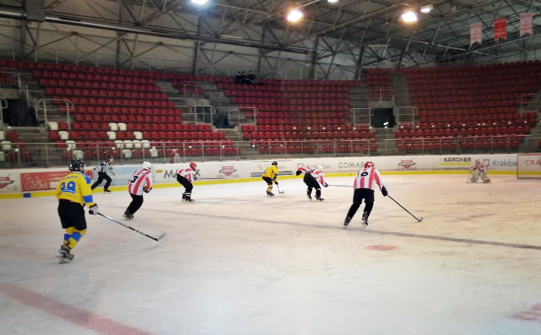 Zmagania w Krakowie rozpoczęły się dla naszego zespołu bardzo pomyślnie i po pierwszej tercji "Szarotki" zjechały z lodu z 5-punktową przewagą. Nasza gra była przemyślana i rozważna, co zaawocowało wynikiem 0:5.W drugiej terci rywale zmienili nieco taktykę i wyraźnie się podnieśli. W 30 minucie w naszej bramce krążek wylądował po raz pierwszy. Ponownie znalazł się tam 8 minut później, ale te 8 minut wystarczyło, by Filip Leja i Kuba Trzebunia wbili KS Cracovii po jednej bramce. Druga tercja przyniosła więc remis 2:2.