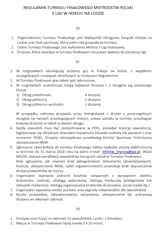 Kontakt z organizatorem Mistrzostw Polski II Ligi e-mail infinitas_krynica@wp.pl