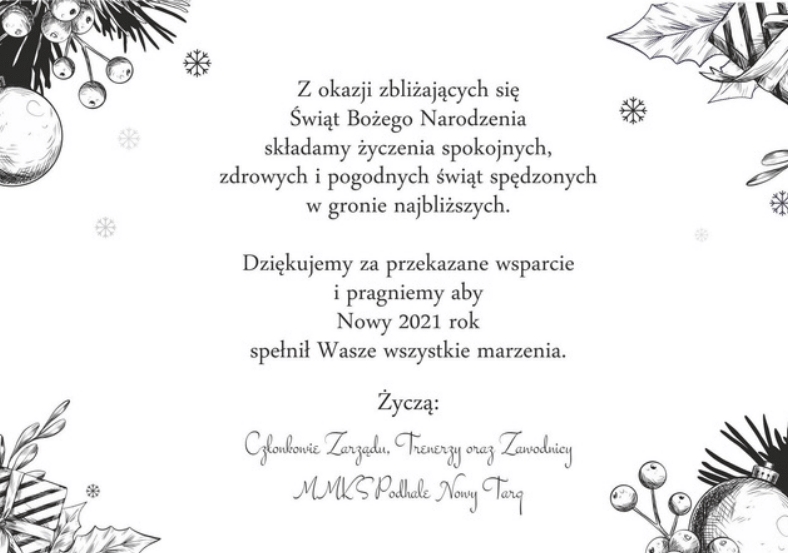 Porcja świątecznych życzeń bożonarodzeniowych od klubu MMKS Podhale Nowy Targ.