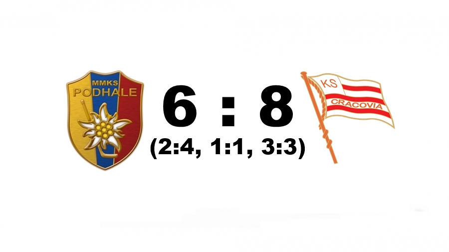 Spotkanie rozpoczęli gości, którzy w przeciągu 7 minut zdobyli dwie bramki. Zespół Podhala potrzebował 10 minut na rozkręcenie się. Dokładnie w 10:50 padło trafienie Dawida Łojasa. Od tej chwili oba zespoły toczyły mocną walkę o krążek i żadna bramka nie pozostała bez odpowiedzi. Tercja pierwsza zakończyła się wynikiem 2:4. Po Łojasie punktował jeszcze Patryk Zubek.W drugiej części Konrad Kaleta z Podhala ustrzelił trzecią bramkę podnosząc wynik na 3:4, ale rywale nie pozostali dłużni i tercję drugą zamknął wynik 1:1.