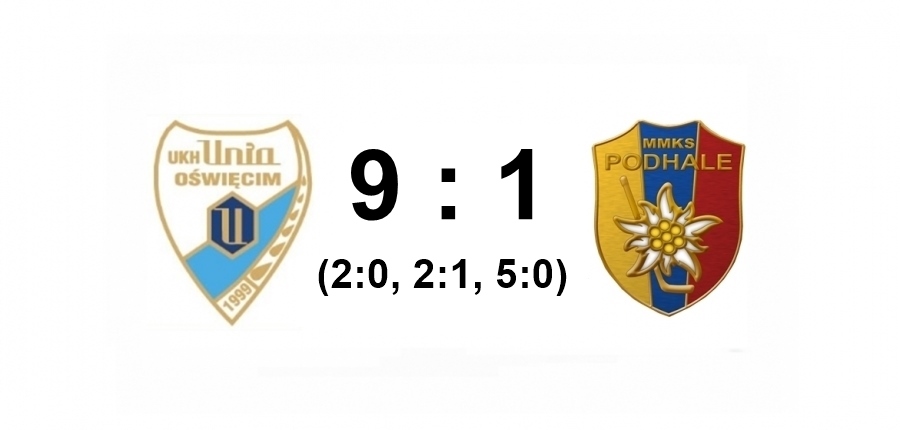Początek meczu przyniósł 8 minut ciszy, po których gospodarze punktowali po raz pierwszy. Drugą bramkę ustrzelono w 14" po czym znowu nastąpiło uspokojenie gry.W tercję drugą rywale wjechali rozpędzeni i podwyższyli wynik na 3:0 już po 43 sekundach. Igor Antolak minutę później ostudził zapędy Unii, ale jedynie na 5 minut. Danylo Baida podwyższył rezultat na 4:1. Z takim stanem obie drużyny wjechały do tercji trzecie.